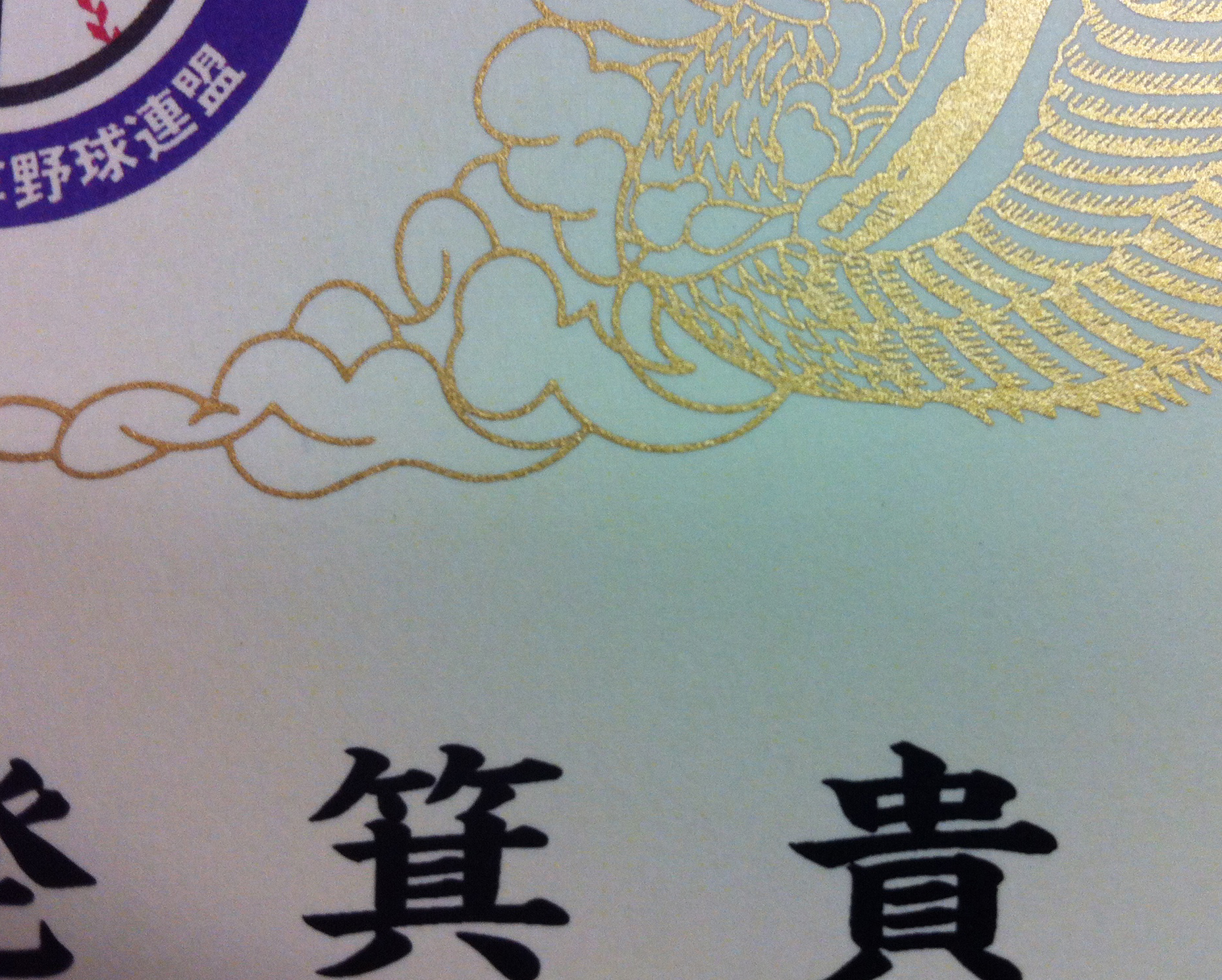 野球チームの指導に貢献されたコーチに対する表彰状で、チームロゴをカラーで印刷し、額縁と一緒に納品させていただきました事例です。